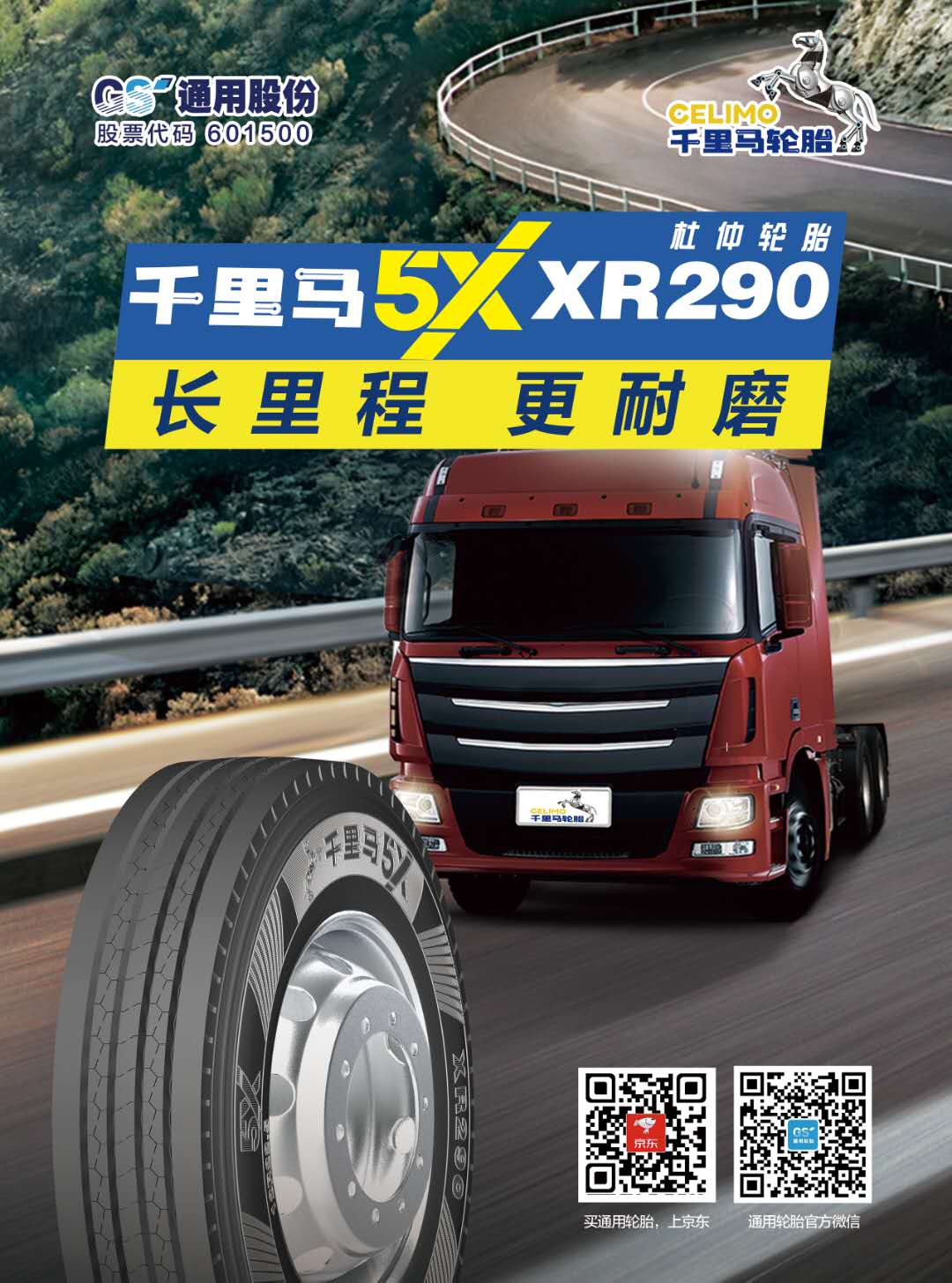 作為通用股份旗下主力品牌,千里馬輪胎從面世至今的十多年里,堅持以提升自主創新能力為核心,憑借強勁的研發優勢和匠心品質,成功開辟了中國細分市場的藍海,憑借短途工礦胎、中長途無內胎等產品贏得了廣泛的市場口碑和司機用戶信賴。近年來,隨著消費需求的不斷升級,千里馬輪胎將品牌創新作為核心發展戰略,重點打造高端子品牌——千里馬5X系列,品牌的高端定位不斷強化。其中千里馬5X XR290 創新采用行業領先的杜仲膠胎面配方技術,賦予輪胎更加卓越的品質,有效的解決普通卡客車輪胎在使用過程中消耗快、油耗高、驅動性能差等問題,輪胎安全性與耐磨性大幅提升。連年增長的銷量,證明千里馬輪胎已經深受廣大用戶的信賴。